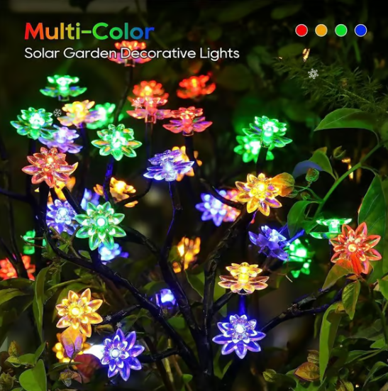 Outdoor Waterproof Cherry Blossom Multicolor Solar Garden Lights